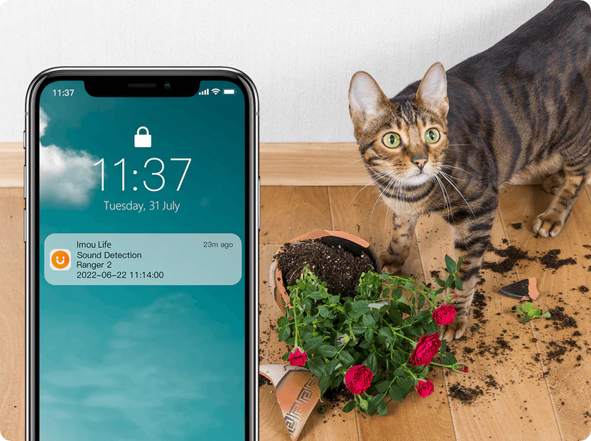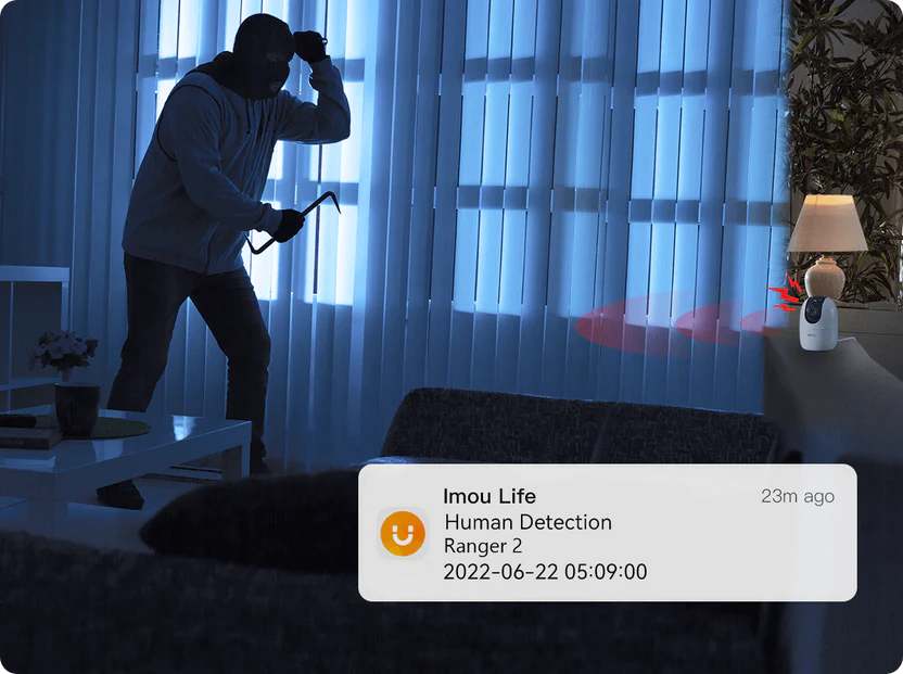 Reciba de inmediato notificaciones cuando la cámara de seguridad detecte algo anormal, como personas desconocidas en su hogar o ruidos extraños cerca de la cámara.